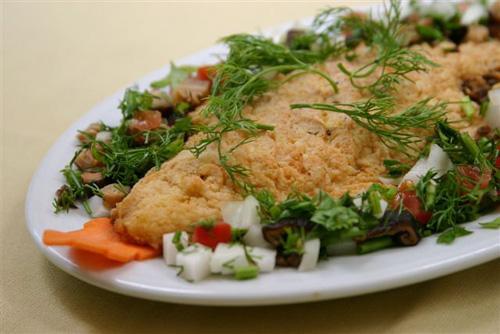 – Cho dầu ăn vào chảo đun nóng, nhúng phi lê cá vào hỗn hợp bột chiên đã chuẩn bị ở trên rồi thả vào chảo dầu nóng chiên cho chín vàng đều, sau đó vớt để trên đĩa có lót sẵn giấy thấm dầu.