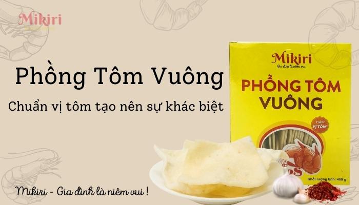 Phồng tôm là một trong những món mới được nhãn hàng Mikiri ra mắt trong giữa năm nay. Không chỉ ra mắt dòng phồng tôm vuông cao cấp sang trọng. Hiện tại còn cung ứng thêm dòng bánh tròn truyền thống, và gần gũi với người tiêu dùng. Phồng tôm Mikiri được rất nhiều khách đánh giá tốt và cho điểm tuyệt đối khi vừa tung ra thị trường. Có lẽ là do thành phần gồm: tinh bột khoai mì, tôm, tỏi, đường,.... Đặc biệt đậm vị tôm tạo nên sự khác biệt so với dòng bánh khác.